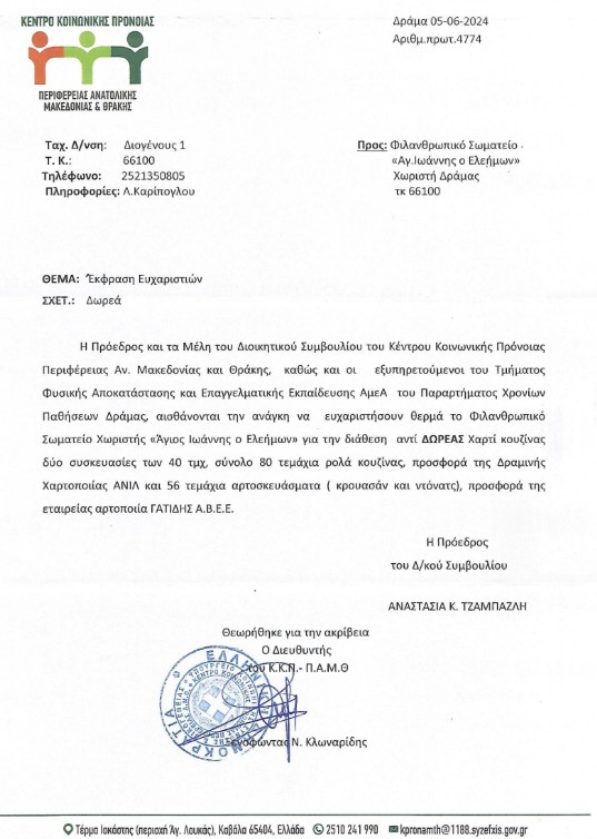 2024 – ΕΥΧΑΡΙΣΤΗΡΙΑ ΕΠΙΣΤΟΛΗ ΠΡΟΚΕΚΑ